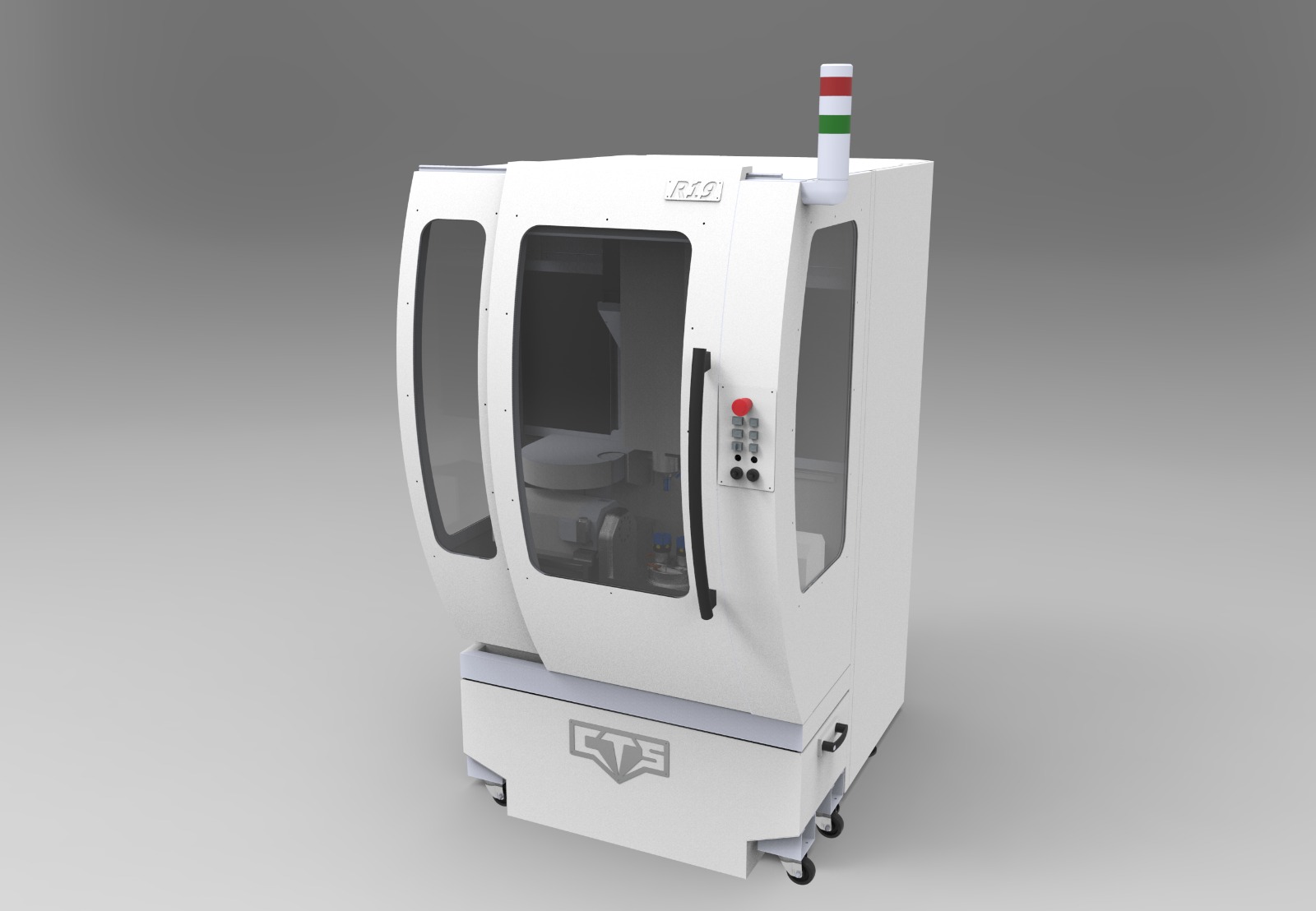 R19 è un centro di lavoro a 5 assi continui compatto capace di lavorare un cubo con lato 150 mm o